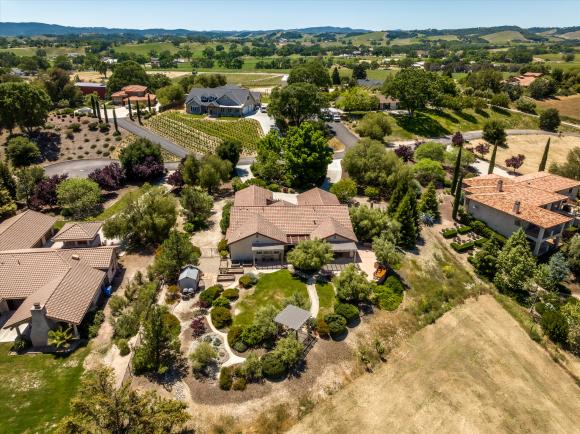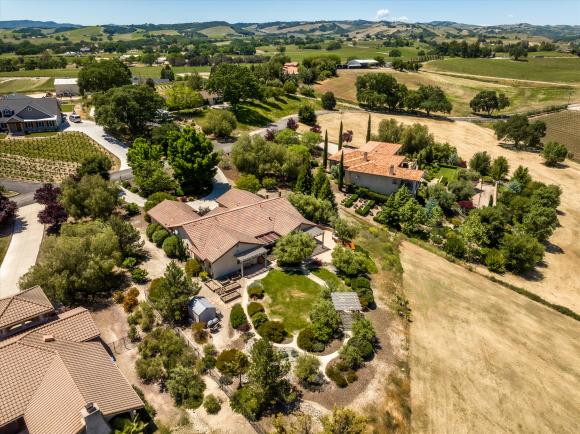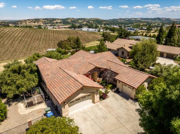 Superior Country Elegance. Don't overlook this secluded home just a few minutes from town off Highway 46 West. Located on a private, gated cul-de-sac in a country setting with over 2700 sq. ft, this four bedroom, three bath home on nearly two acres combines a country feeling with gracious elegance. As you walk into the home and are greeted by views over the surrounding hills and vineyards, you immediately realize that this is not a typical suburban house. The elegant living room separates the comfortable open kitchen and family room area from the bedroom wing to your right. With granite counters, alder cabinets, new GE Profile appliances, a five burner cooktop, and an island worktable, this is a kitchen to create in. Your family and guests can watch and chat from the bar while you work, or comment on the latest news or sporting events in the adjoining family area. Outside there are two built-in BBQs and a wine bar from which you can comfortably watch the light changing over the neighbor's vineyard as the patio is situated so it is shaded from the afternoon sun. The covered sitting area looks out over the lawn and garden and the gazebo above the hillside. Formerly a vineyard, the irrigation remains in place for your own agricultural dreams. The extensive plantings, fruit and shade trees are all on well irrigation thus saving the expense of community water.